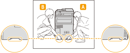 Проверьте, чтобы крышка основного блока и крышка универсального лотка были закрыты, прежде чем перемещать аппарат.