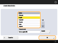 es mostrarà a la part inferior de la pantalla tàctil. Podeu canviar l'idioma de visualització actual; per fer-ho, premeu el botó <Canviar idioma/teclat>, seleccioneu l'idioma que vulgueu de la llista i premeu <OK>.