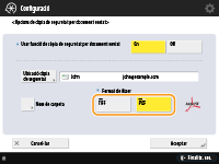 Podeu desar una còpia d'un document enviat enviant-la a diverses destinacions que incloguin una destinació de fax a la pantalla de funcions bàsiques de lectura. Per mostrar les destinacions de fax a la pantalla de funcions bàsiques de lectura, cal establir <Permetre Fax en funció Llegir i enviar> en <On>. <Mostrar funció de fax>