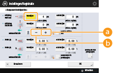 Stel het vergroting-/verkleiningspercentage (%) in voor <Zoom (a)> en <Zoom (b)> op het scherm <Aanpassen beeldpositie>  druk op <OK>.