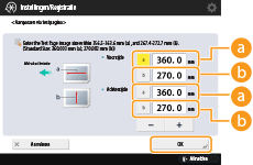 De standaardwaarden zijn <a> = 360,0 mm en <b> = 270,0 mm.