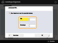 (Wissen) om de pincode te wissen (het tekstvak moet leeg zijn). Druk vervolgens op <OK>.