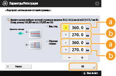 Задайте коэффициент увеличения/уменьшения (%) в пунктах <Коэфф. масшт. (a)> и <Коэфф. масшт. (b)> на экране <Настройка положения изобр.>  нажмите <OK>.
