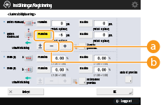 Använd <-> och <+> i <Baksida> i <Justera framkant> för att ange värdet.