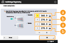 Standardvärden är <a> = 360,0 mm och <b> = 270,0 mm.