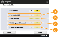 Quan establiu l'opció <Sol·licitar xifratge per connexió> en <On>, l'equip només es pot connectar a servidors SMB que admetin la comunicació xifrada de SMB versió 3.0. Si establiu les opcions <1.0> i <2.0> en <On> per <Especificar versió del client SMB> però l'opció <3.0> no està establerta en <On>, l'equip no es podrà connectar a servidors SMB que no admetin la comunicació xifrada de SMB versió 3.0.