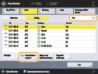 Når du trykker på  (Status Monitor), vises skærmen Status Monitor/Annullér, hvor du kan tjekke brugshistorikken for hver funktion som f.eks. kopiering, printning, afsendelse af e-mail, afsendelse/modtagelse af faxer/I-faxer, lagring af filer i "Avanceret område" osv. Fra denne skærm kan du også printe brugshistorikken for hver funktion.