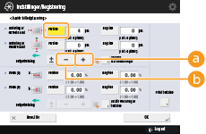 Indstil op/nedkopieringsforholdet (%) for <Zoom (a)> og <Zoom (b)> på skærmen <Justér billedplacering>  tryk på <OK>.