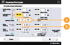 Задайте коэффициент увеличения/уменьшения (%) в пунктах <Коэфф. масшт. (a)> и <Коэфф. масшт. (b)> на экране <Настройка положения изобр.>  нажмите <OK>.