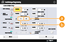 Ange förstorings-/förminskningsförhållandet (%) för <Zoom (a)> och <Zoom (b)> på skärmbilden <Justera bildplacering>  tryck på <OK>.