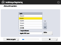 Om du vill ändra tangentbordslayouten, tryck på <Ställ in>, välj tangentbordslayout och tryck på <OK>.