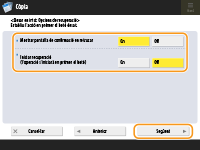 Si seleccioneu <On> per a <Iniciar recuperació (l'operació s'iniciarà en prémer el botó)>, la còpia comença quan es prem el botó registrat sense prémer  (Iniciar). Seleccioneu <Off> si voleu començar a copiar manualment en prémer  (Iniciar).