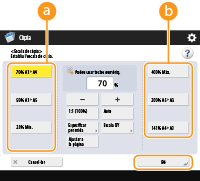 Quan apareix la pantalla per seleccionar la mida de l'originalSi l'opció <Selecció paper> està establerta en <Auto>, és possible que s'obri la pantalla per seleccionar la mida de l'original. Aquesta pantalla apareix perquè la mida de l'original no es pot verificar i el paper no es pot seleccionar automàticament quan es tracta d'originals d'alta transparència, originals amb un color base extremadament fosc o originals de mida petita. Seleccioneu la mida de l'original o una mida semblant a la de l'original.