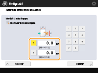 Especifiqueu la longitud del costat <X> i del costat <Y>. Premeu <X> o <Y> per introduir la longitud de cada costat utilitzant les tecles numèriques.