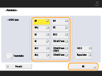 painike, johon kirjekuorityyppi on tallennettu <OK>. Monitoimitason usein käytetyn paperikoon ja -tyypin tallentaminen |