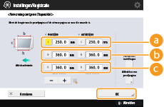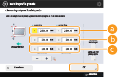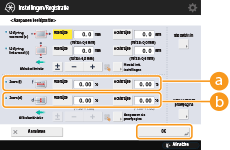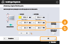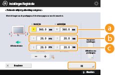 druk op <OK>.Als u de volgende drie numerieke waarden gebruikt, wordt het apparaat automatisch aangepast zodat het onjuiste afdrukgebied kan worden gecorrigeerd.