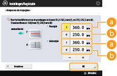 druk op <OK>.Als de gemeten lengte van <f> bijvoorbeeld 360,4 mm is, voert u 360,4 in. Het verschil in lengte (0,4 mm in deze situatie) wordt automatisch verkleind, zodat de afbeelding met het juiste formaat wordt afgedrukt.