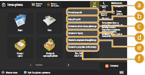<Ogranicz wyświetlanie funkcji>: Wybierz funkcje lub aplikacje MEAP, które mają być ukryte na ekranie <Strona główna>.