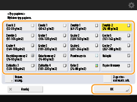 przycisk, do którego została przypisana koperta jako typ papieru <OK>. Rejestrowanie najczęściej używanego formatu i typu papieru dla tacy wielofunkcyjnej |