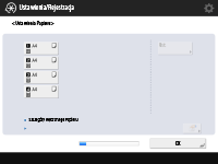 Wybierz czas wyświetlania ekranu logowania. Jeżeli naciśniesz przycisk <Wyświetl gdy wybra. funkcję>, naciśnij kolejno pozycje <Funkcje> i <Kopia/Wydruk kolorowy>, wybierz funkcję, dla której będzie wyświetlany ekran logowania i naciśnij przycisk <OK>. Dodatkowo wybierz elementy ustawień na ekranie <Ustawienia/Rejestracja>, które będą wymagać zalogowania się.