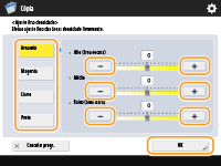 Ajusta a densidade de amarelo, magenta, ciano ou preto separadamente.