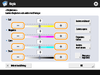 Justera tätheten för gult, magenta, cyan eller svart var för sig.