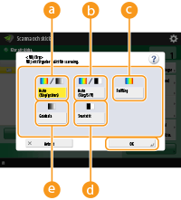 Om du placerar ett original i A4-format, tryck på <Alternativ> på skärmbilden med grundläggande scanningsfunktioner