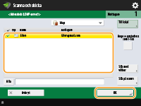 <Orig. innehållsriktning> välj <Övre kant mot bortre kant> eller <Övre kant mot sidkant> enligt originalets orientering tryck på <OK>.Ange flera mottagare inklusive faxGenom att sätta <Aktivera fax i scanningsoch sändfunktion> till <På> kan du ange faxmottagare på skärmbilden med grundläggande kopieringsfunktioner (<Visa faxfunktion>). Den här inställningen är användbar för ange flera mottagare inklusive fax, t.ex. när du sparar en kopia av skickade fax i en filserver.