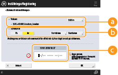 Justera datum och tid för maskinen. Dessa inställningar måste göras korrekt eftersom datum och tid används vid automatisk sändning av e-post vid en angiven tidpunkt.