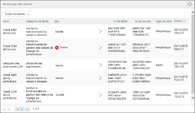 Vous pouvez vérifier le résultat de l'exécution des tâches pour chaque périphérique ou agent cible.