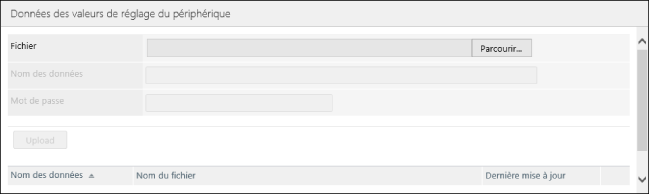 Spécifiez les données à transférer dans la page [Données des valeurs de réglage du périphérique].
