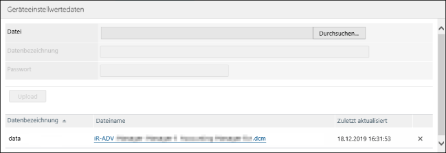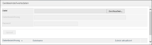 Legen Sie die Daten zum Hochladen auf der Seite [Geräteeinstellwertedaten] fest.