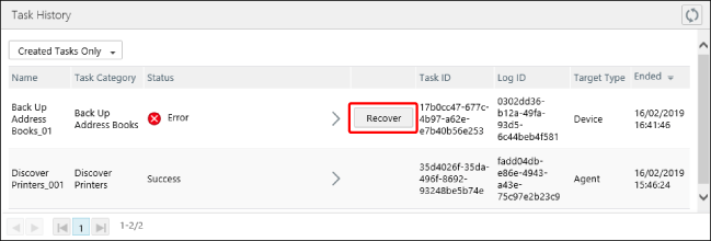 单击针对目标任务显示的 [Recover]。