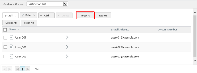 还可以通过此步骤导入从运行于 iW Management Console v3.x 中的Address Book Management Plug-in导出的 ABK 格式和 CSV 格式文件。 |