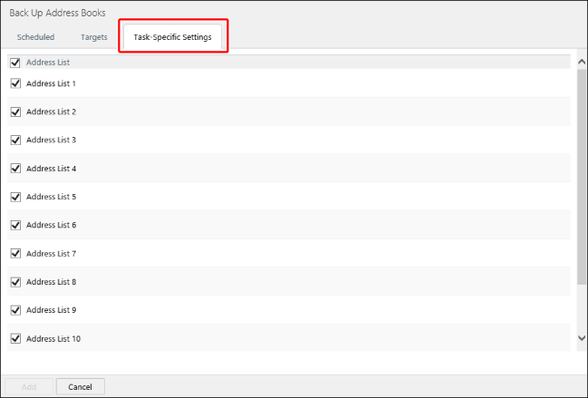 在 [Scheduled] 选项卡和 [Targets] 选项卡上配置任务。