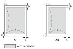 Toda el área de una página, es decir, 1/8" (4,2 mm) desde los bordes superior e inferior y 1/8" (3,4 mm) desde los bordes izquierdo y derecho, está disponible para imprimir en papel A4. Sólo se puede incrementar la anchura.