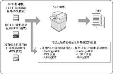 UFR II、PCL、PS和直接打印打印机操作的差异性