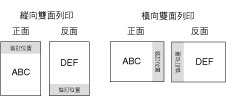此參數確定是沿紙張的長邊還是短邊進行裝訂。若裝訂雙面列印紙張,會自動調整影像方向以正確佈局。