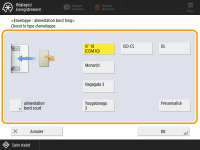 Si <Toujours spécifier> sous<Régl. par défaut plateau multifonctions> est réglé sur <Papier favori>, un écran s'affiche pour vous permettre de sélectionner votre « Papier favori » lorsque vous chargez le papier dans le plateau multifonctions. <Régl. par défaut plateau multifonctions> |