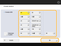 Se appare una schermata diversa da quella in cui si specificano il formato e il tipo di cartaSe appare un messaggio che richiede di regolare la guida della carta, regolare nuovamente la larghezza della guida e premere <OK>. |