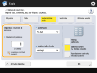 2 | Inserire il numero di riferimento iniziale. ![]() Immettere nel campo input di <Numero di partenza> utilizzando i tasti numerici. |