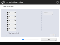 Verificare che la carta caricata nella fonte di alimentazione sia specificata correttamente. ![]() ![]() Se i formati carta sono corretti, premere <OK>. Per le informazioni sullo schermo e le istruzioni su come cambiare le impostazioni, vedere Indicazione di formato e tipo di carta nel cassetto. Se non è stato eseguito l'accesso come amministratore, procedere alla Fase 11. | |