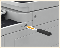 Puede conectar un dispositivo de memoria USB en los puertos USB del lado derecho del equipo e imprimir directamente los datos que se encuentran en el dispositivo de memoria USB. Los originales escaneados con el equipo también podrán guardarse directamente en el dispositivo de memoria USB.