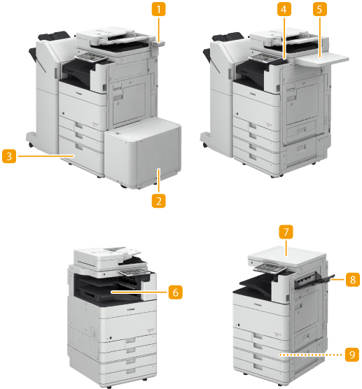 Staple Finisher-Y/Booklet Finisher-Y/Buffer Pass Unit-L/2/3 Hole Puncher Unit-AQuando o Inner Finisher-H está instalado