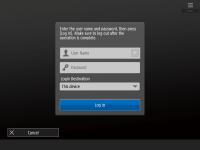 Quando a tela de login é exibida, os usuários autorizados registrados devem fazer login para continuar operando a máquina. Para fazer o login, cada usuário deve inserir seu nome de usuário e senha. Isso garante a segurança da máquina. Além disso, os usuários podem usar a máquina como é mais conveniente, personalizando o display e as configurações de acordo com as suas preferências. Os itens exibidos na tela de login variam dependendo das configurações de gerenciamento de usuário. Realize a operação com base nos itens que são exibidos.