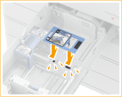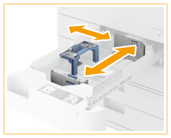 | Ajuste a guia esquerda da gaveta de papel 1 e conecte o acessório do alimentador de envelope B à guia esquerda. |