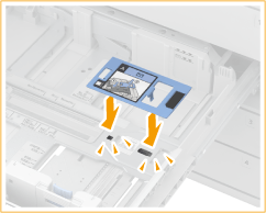 Faça pressão com firmeza nos quatro cantos. Em particular, faça pressão no lado voltado para a direção na qual os envelopes serão alimentados. Faça pressão com firmeza de modo que a aba fique plana.