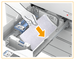 Encaixe o Acessório do alimentador de envelopes na gaveta de papel.