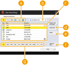 Selecione <Personal Address List>, <Address List 1> para <Address List 10> ou <Address List for Admin.> para filtrar os destinos para que sejam exibidos na lista de endereços.