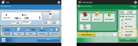 Para usar com mais facilidade a tela <Home> e Recursos básicos de cada função, você pode personalizar a tela reorganizando os botões ou criando botões de atalho. Além disso, você pode trabalhar mais eficientemente registrando as configurações já especificadas como funções usadas com frequência em <Personal>/<Shared>, ou as configurações pessoais para personalizar o ambiente de operações de acordo com as suas preferências.